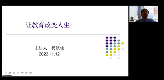 为全面落实师院党委“21122”总体工作思路,进一步提高师范生培养质量,助力师院内涵式高质量发展和唐山市基础教育事业高质量发展,2022年11月12日晚,买球体育官方网站通过腾讯会议举办“名师讲堂”活动。此次讲座的主题为:“让教育改变人生”,邀请了石家庄市第二十八中学教务主任、优秀班主任杨轶佳老师主讲,活动由买球体育官方网站教师胡志洋主持。