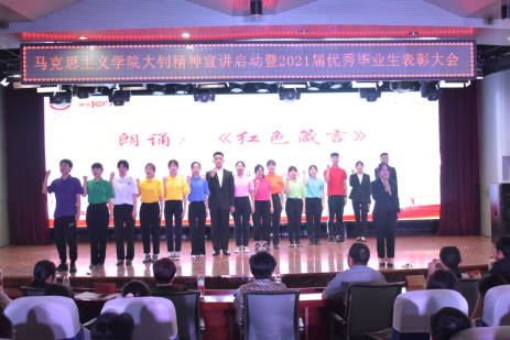 在庆祝中国共产党百年华诞之际,为了进一步宣传、弘扬、传承大钊精神,展现李大钊为“索我理想之中华,青春之中华”而英勇奋斗的一生,买球体育官方网站成立了青春宣讲团。同时携手建党百年华诞,选树典型,表彰先进,传递新时代青春正能量。买球体育官方网站于6月9日晚在会议中心举办大钊精神宣讲启动暨2021届优秀毕业生表彰大会。本次大会由买球体育官方网站团总支书记李思思主持,出席此次活动的有买球体育官方网站党总支书记郭海莉、买球体育官方网站党总支副书记石瑾、买球体育官方网站副院长宋晓敏、学生处副处长单丽、学生处思想政治教育科科长李冰以及买球体育官方网站全体毕业班班主任老师,毕业生代表及全体2020级学生参加。