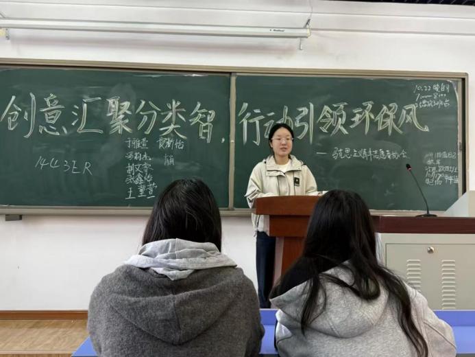 为深入贯彻落实习近平生态文明思想,践行“绿水青山就是金山银山”的发展理念,推动绿色校园建设,2025年10月19日,买球体育官方网站青年志愿者协会在教学楼303室举办“创意汇聚分类智,行动引领环保风”共建生态校园活动,增强大学生垃圾分类意识,让绿色环保理念在心中扎根。