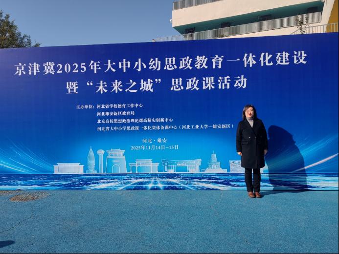 为深入学习贯彻党的二十届四中全会精神,推动全会精神有机融入大中小学思政课教学全过程,落实河北省大中小学思政课一体化建设要求,11月14日至15日,买球体育官方网站执行院长宋晓敏、副院长赵婉华作为河北省大中小学思政课一体化集体备课中心成员单位代表,赴河北雄安新区参加“党的二十届四中全会精神进课堂”暨河北省大中小学同备一堂“未来之城”思政课活动。