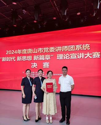 6月14日,由唐山市委宣传部、市委讲师团(市社科联)、市直机关工委主办的第三届理论宣讲大赛在唐山广播电视台演播大厅举办。本次大赛以“新时代·新思想·新篇章”为主题,来自全市18个县(市、区)、各大专院校、市直有关部门共39支代表队报名参赛,最终有14支队伍脱颖而出来到最后的决赛舞台。买球体育官方网站王欣、曹妍、韩冰三名教师在领队赵婉华的指导下顺利通过初赛进入了决赛,并获得了三等奖的好成绩。