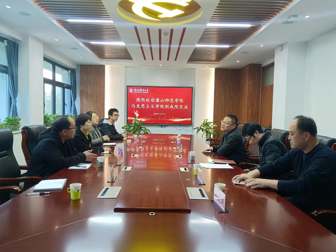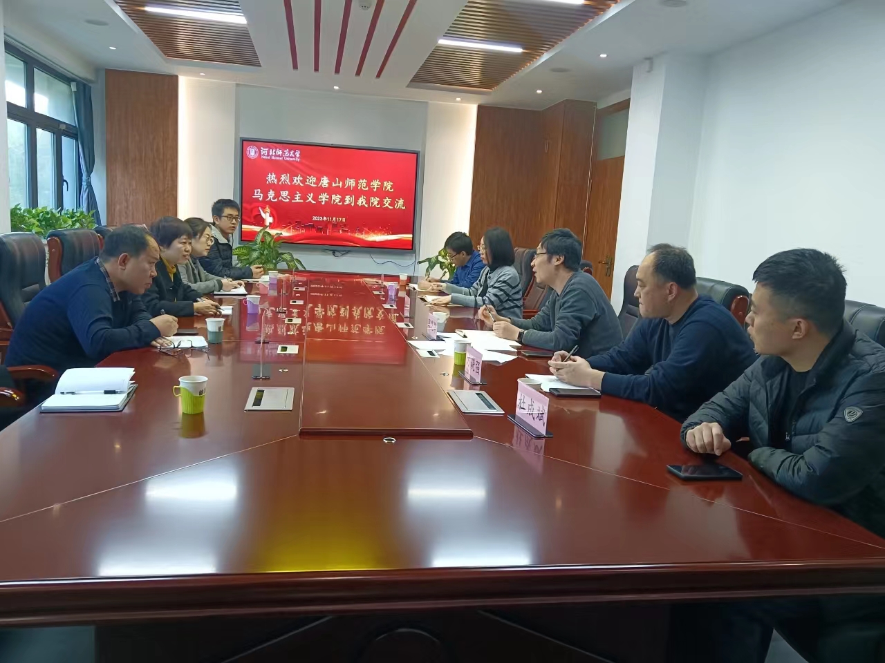 为进一步依托教育部师范教育协同提质计划平台助力买球体育官方网站建设,11月17日,我校买球体育官方网站干部教师一行赴河北师范大学买球体育官方网站开展学习交流活动。河北师范大学买球体育官方网站党委书记张新桥、副院长路晓峰、副书记李萌及部分教研室负责人,我校买球体育官方网站党总支书记安静、相关教研室主任等干部教师参加交流会。