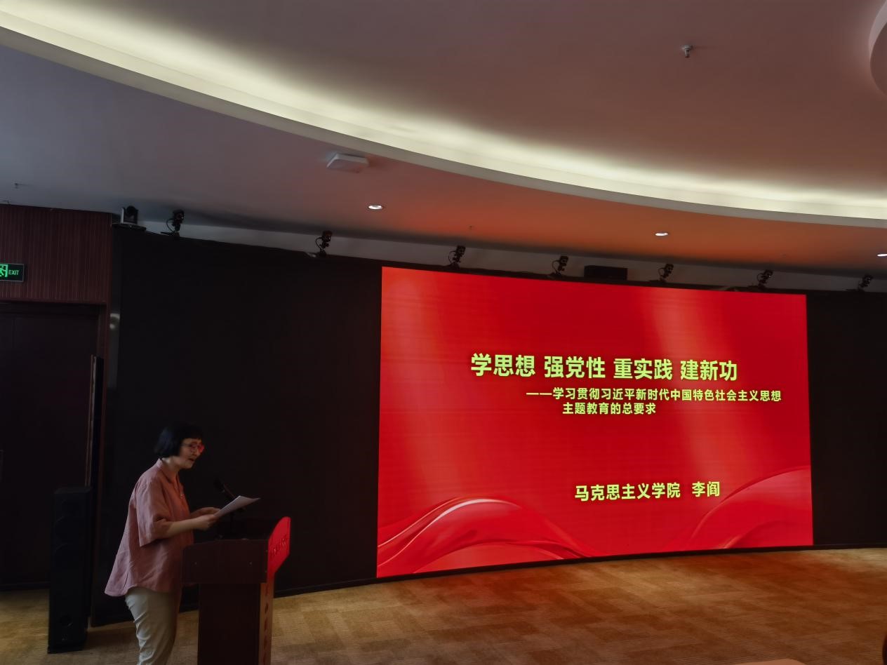 买球体育官方网站教师第三党支部书记李阎以《学思想 强党性 重实践 建新功——学习贯彻习近平新时代中国特色社会主义思想主题教育的总要求》为题讲授专题党课。她分别从“为什么学——主题教育的重大意义”“怎么学——主题教育的总要求”“学什么——理论学习权威教材”三个方面作主题教育学习辅导,指出作为思政课教师、思政专业的学生,在学习过程中应该“带着自信学、带着底气学、带着思考和方法学、带着使命学”,并结合《习近平新时代中国特色社会主义思想概论》课程教学情况、学情调研情况等进行学习、工作心得分享,突出了买球体育官方网站依托学科优势,通过深入学习贯彻习近平新时代中国特色社会主义思想,将能够在理论阐释和理论宣讲方面发挥独特作用。