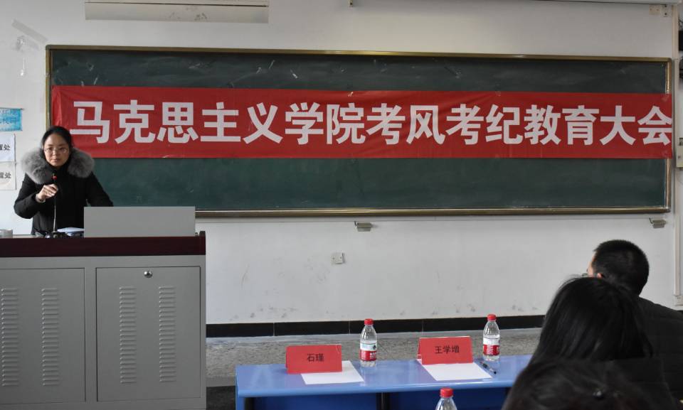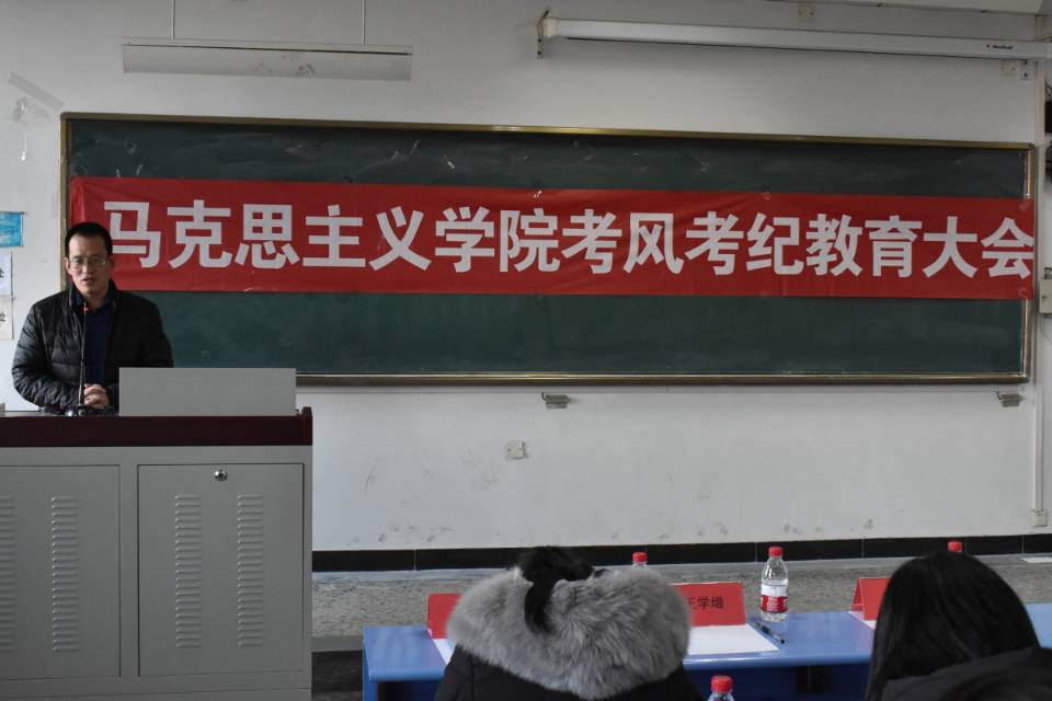 宋晓敏副院长、石瑾副书记先后发表了讲话。宋副院长从马克思的优秀品格、习近平总书记对青年的要求、学校规章制度和个人道德素质等多方面入手,详细讲解了期末考试的纪律和注意事项,进行了考风考纪教育。石瑾副书记结合《买球体育官方网站学生手册》详细解读了学校和学院对考试纪律的要求以及违纪处理办法,并对期末考试提出了具体要求。院学生会主席常远向全院学生发出倡议,倡议全院学生树牢诚信意识、珍惜时间复习、遵守考场纪律、考出好成绩。