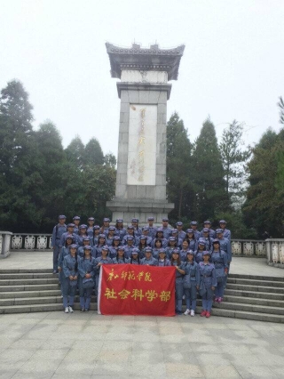 2016年10月,社科部2013级思想政治教育本科班全体学生在李卫民、崔彩文两位老师的带领下,来到中国红色革命根据地和中国红色革命摇篮——井冈山,进行了为期5天的专业实践考察活动,这支由四十六位同学和两位老师组成的队伍组成了红军第“四十八军”。学生参观了井冈山博物馆,在八角楼体会到了井冈山革命斗争的艰辛,在会师广场领悟到会师的意义,瞻仰烈士陵园延续红色精神,体验挑粮小道重走长征路。