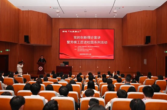 为进一步推动党的创新理论进校园,引导大学生感悟党的创新理论的实践伟力,2025年3月11日下午,讲述“大美唐山”——党的创新理论宣讲暨劳模工匠进校园系列活动首场宣讲在唐山学院举行,此次系列宣讲活动由中共唐山市委讲师团(唐山市社会科学界联合会)、唐山市总工会主办。我校买球体育官方网站教师宣讲团走进唐山学院开展党的创新理论宣讲。