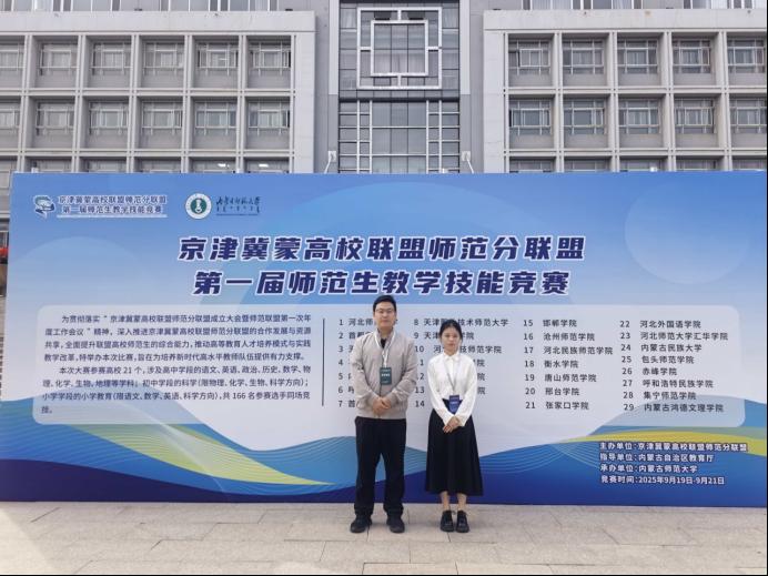 9月20日,京津冀蒙高校联盟师范分联盟第一届师范生教学技能竞赛在内蒙古师范大学圆满落幕。买球体育官方网站2023级思想政治教育专业师范生段佩瑶凭借扎实的专业素养与出色的教学实践能力,在高中政治组激烈角逐中脱颖而出,荣获二等奖,其指导教师胡志洋荣获优秀指导教师称号。