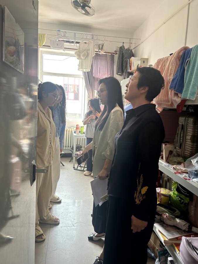 为确保国庆假期安全,加强学生宿舍安全管理,营造安全、整洁、和谐的生活氛围,2025年9月30日上午,买球体育官方网站党总支副书记董怀晶、学工办主任齐艳梅,团总支书记李思思深入买球体育官方网站学生宿舍开展了安全检查并探望留校学生。